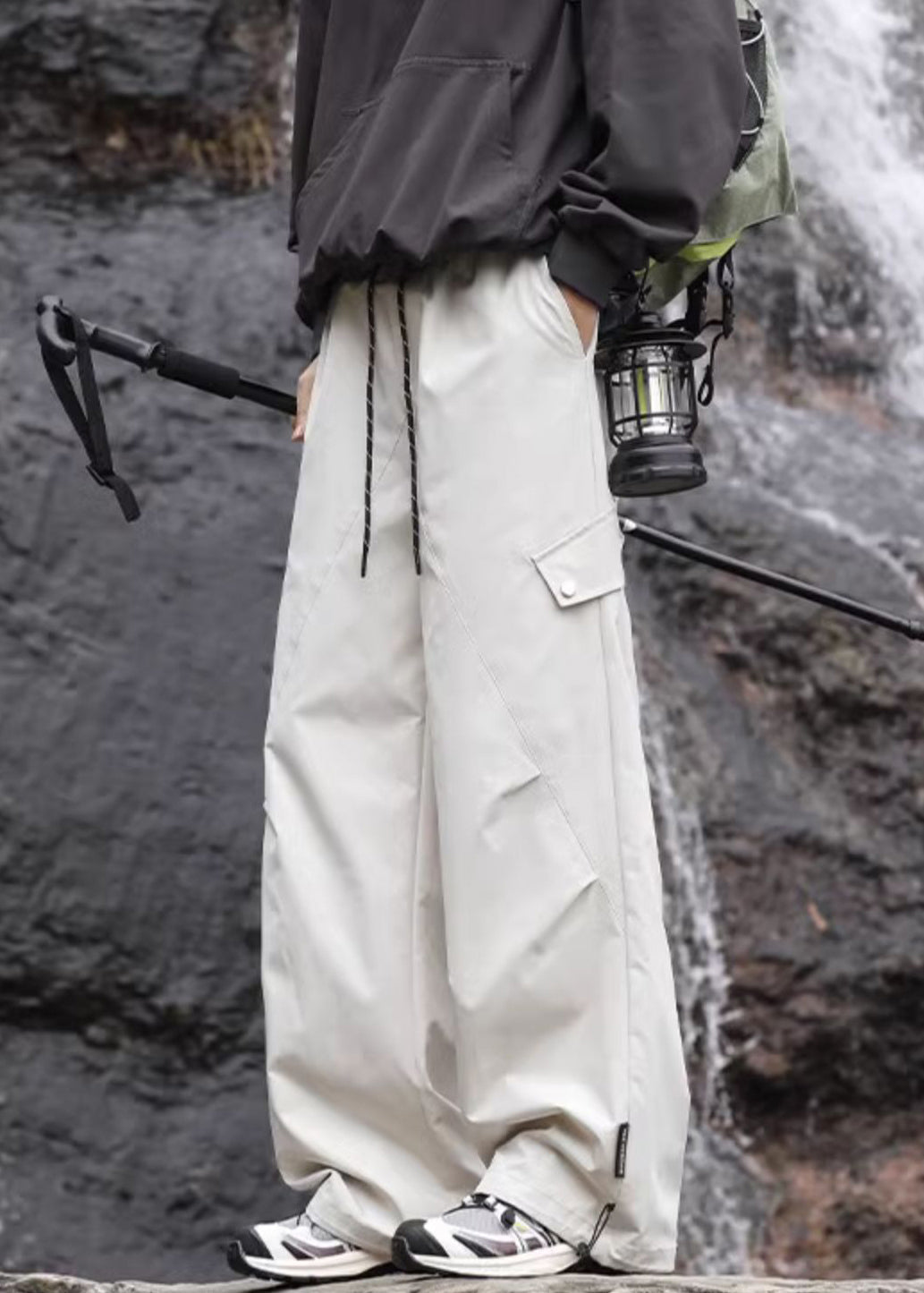 Casual Navy Pockets Lace Up Elastic Waist Cotton Mens Pants Spring