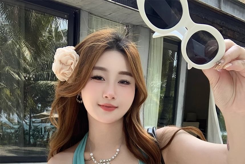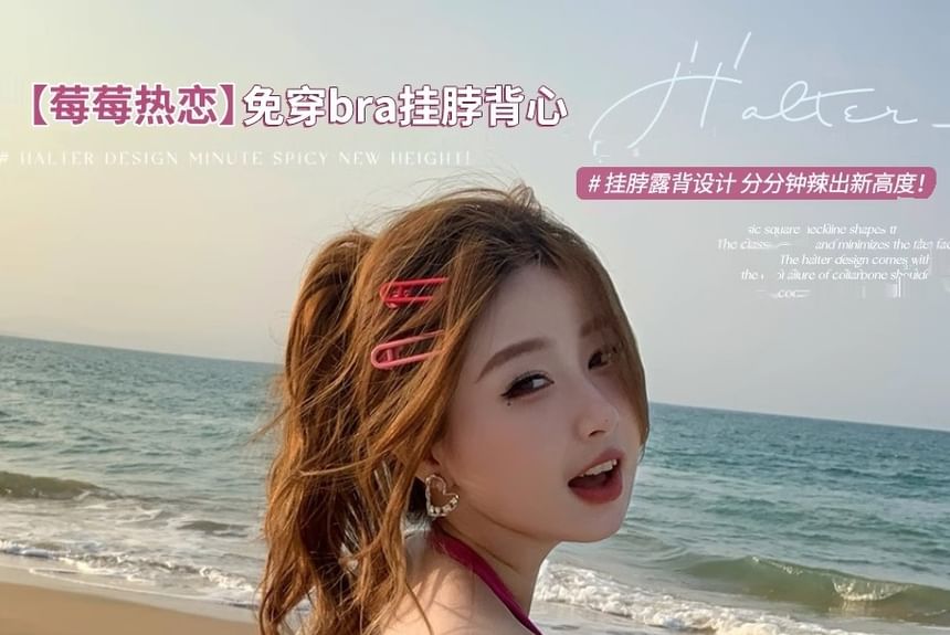 Halter Henley Plain Ruched Top