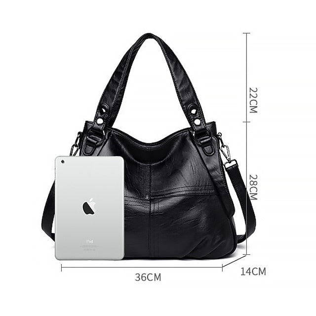 Gender: Women's, Type: Boston Bag, Material: PU Leather, Embellishment: Zipper, Pattern: Quilted, Solid Color, Occasion: Shopping, Holiday, Daily, Outdoor, Width (cm): 14, Length (cm): 36, Height (cm): 28, Function: Waterproof, Large Capacity, Durable, Multi Carry, Category: Shoulder Bag, Handbag, Crossbody Bag,