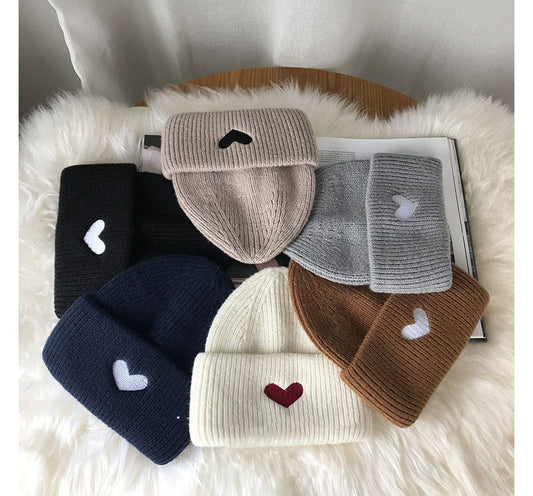 Heart Knit Embroidered Beanie