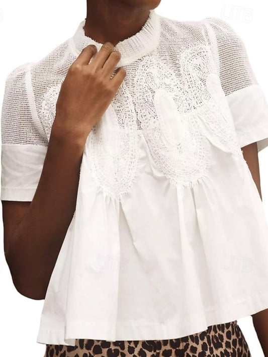 Women's Shirt Blouse Lace Plain Stylish Modern Casual Short
