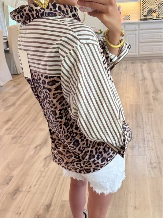 Women's Blouse Buttons Print Leopard Striped Stylish Casual