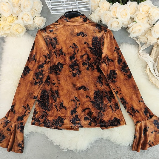 Women's Blouse Dressy Tops Ruched Patchwork Buttons Graphic