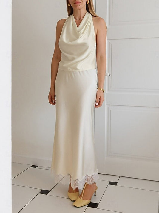 Women's Shirt Satin Shirt Blouse Sleeveless Shirt Backless