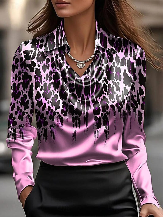 Women's Shirt Ruched Draped Graphic Leopard Elegant Stylish