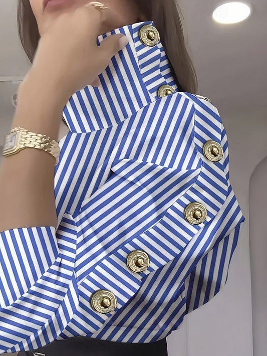 Women's Shirt Blouse Buttons Striped Stylish Long Sleeve