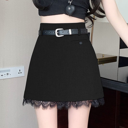 Rise Skirt Plain Trim High Lace A-Line Mini