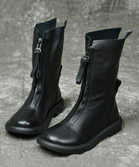 Black Cowhide Leather Stylish Handmade Zippered Splicing Boots RD028