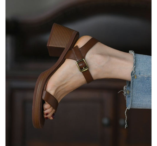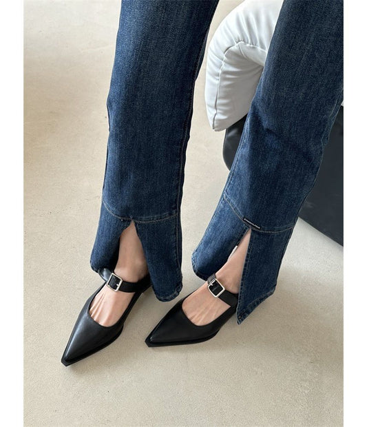Toe Chunky Heel Mary Shoes Pointy Jane