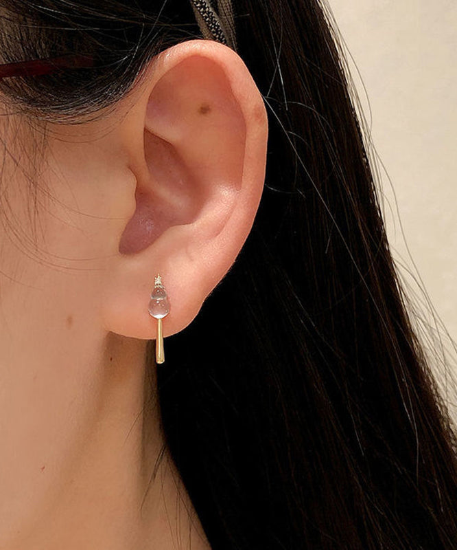 Classy Green Sterling Silver Overgild Chalcedony Zircon Glass Gourd Drop Earrings AC1060
