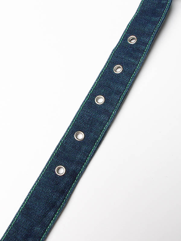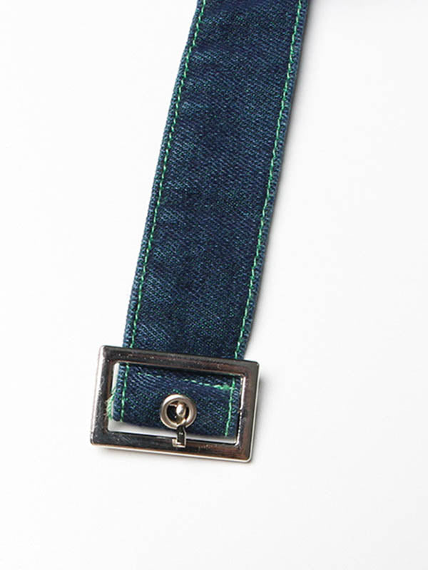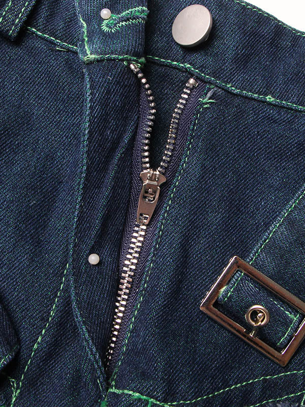 Denim A-Line Green Belted Skirt High Tulle Waisted Shiny Chic