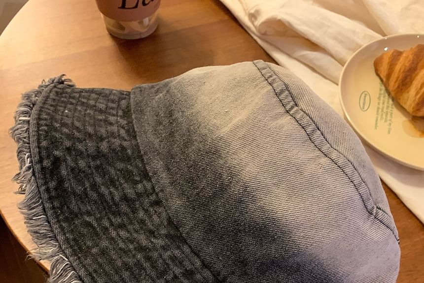 Gradient Washed Frayed Denim Bucket Hat