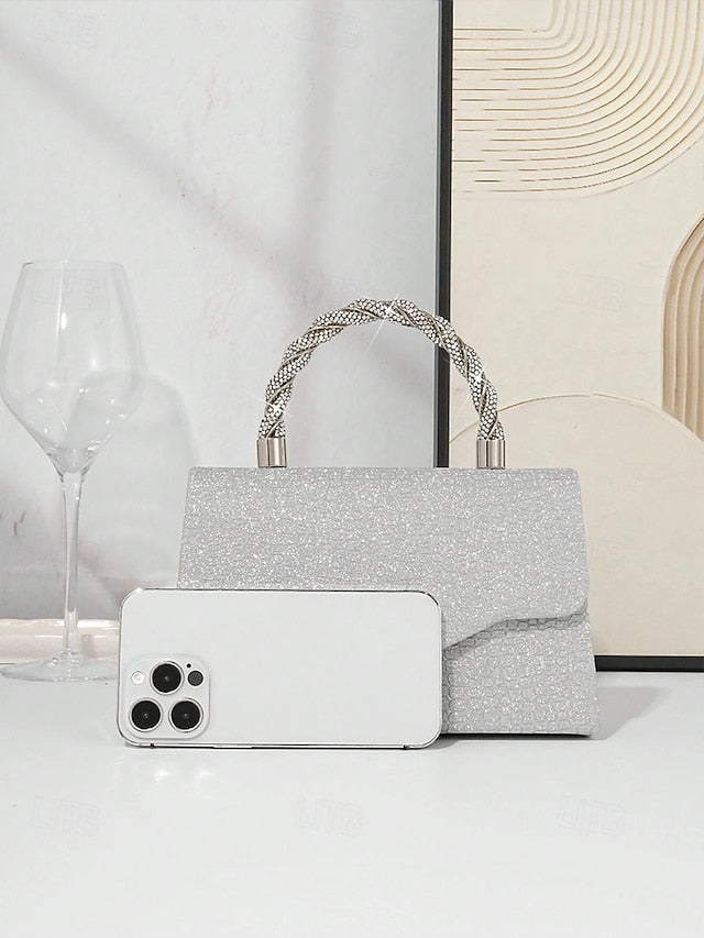 Handbag Women's – Rhinestone Silver with Handle Glitter