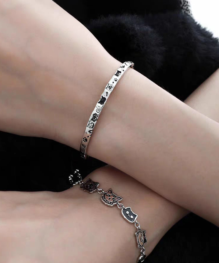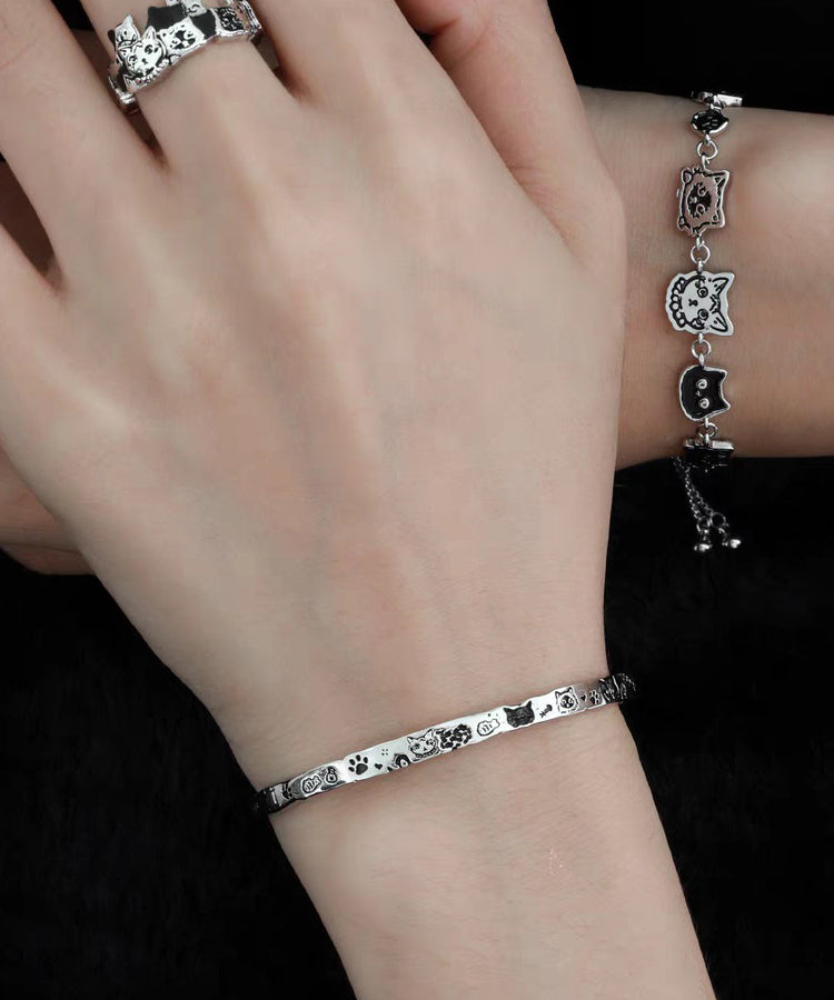 Original Silk Copper Graffiti Little Cats Charm Bracelet Two-Piece Set