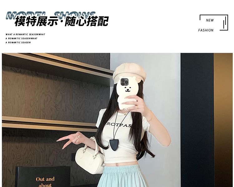 High Waist Plain Lace Trim Maxi A-Line Skirt