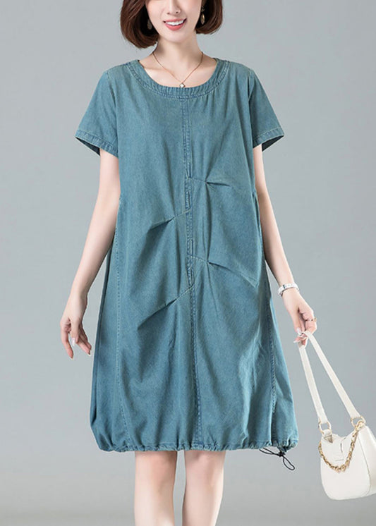 Robe en jean bleu clair avec poches et col rond et manches courtes MN086