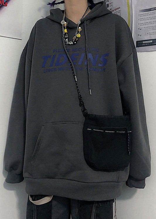 Light Grey Print Pockets Cotton Sweatshirt Men Hooded Spring YQ035