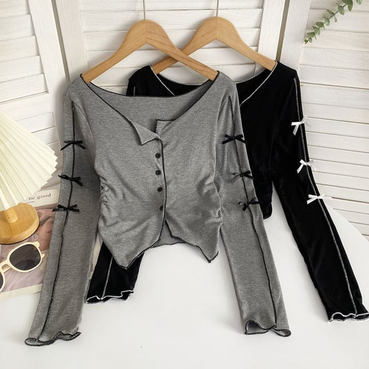 T-shirt uni à manches longues et nœud asymétrique