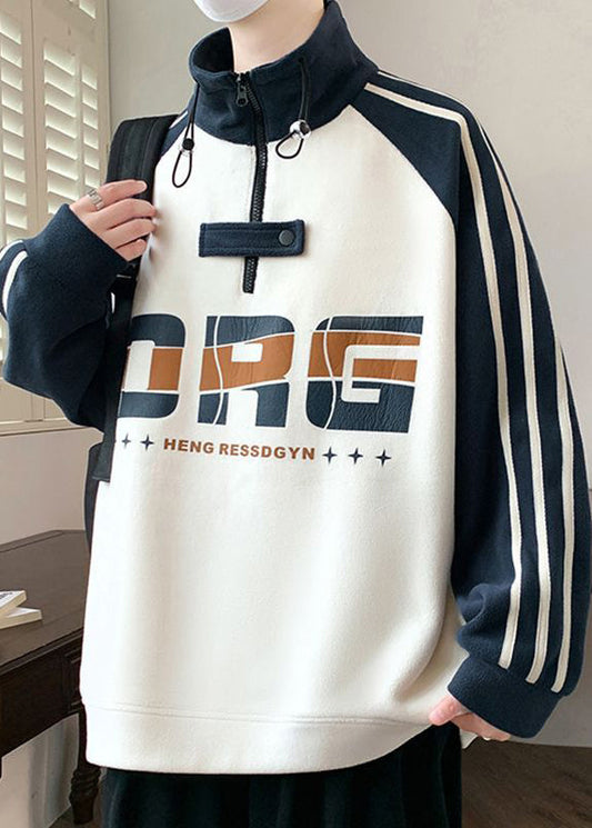 Cool Navy Hign Neck Zippered Patchwork Cotton Men Sweatshirts Fall EQ015