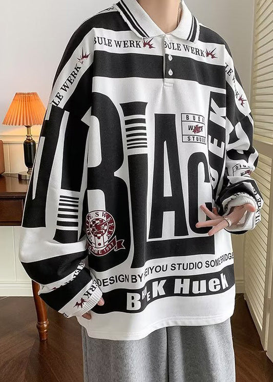 Fashion Green Peter Pan Collar Cotton Men Graphic Polo Shirts Fall WJ003