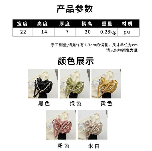 Faux Pearl Strap Fluffy Bow Flap Crossbody Bag