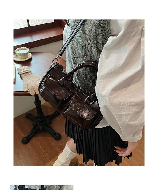 Faux Buckled Leather Plain Flap Bag Crossbody