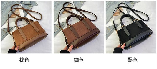 Faux Leather Crossbody Handle Buckled Bow Top Bag