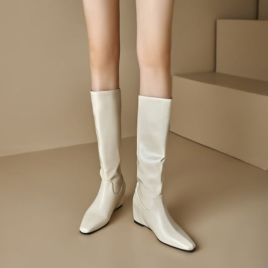 Buckled Asymmetrical Chunky Heel Tall Boots