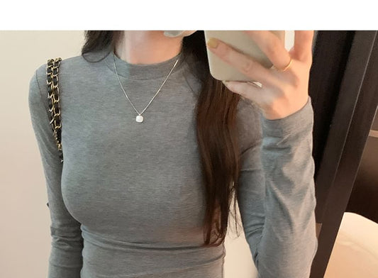 Long-Sleeve High Neck Plain Tee
