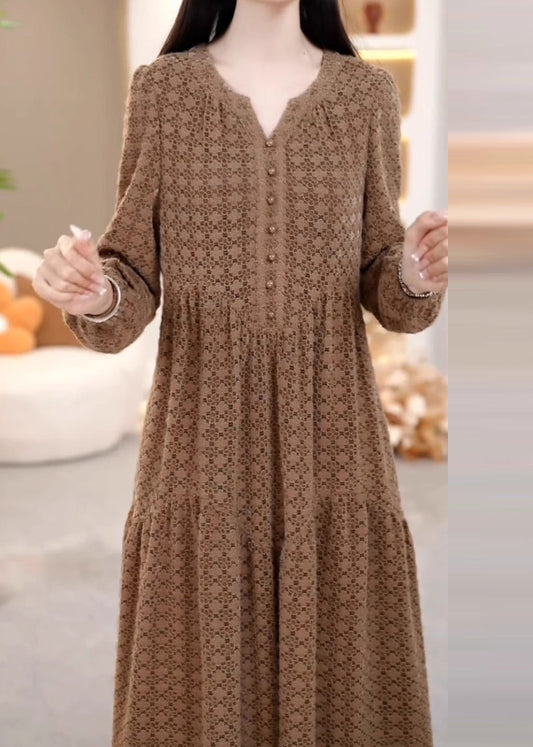New Coffee Hign Neck Pockets Patchwork Warm Fleece Dresses Winter RL021