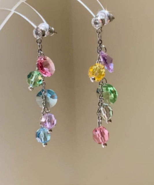 Copper Tassel Fashion Zircon Earrings Drop Overgild Rainbow