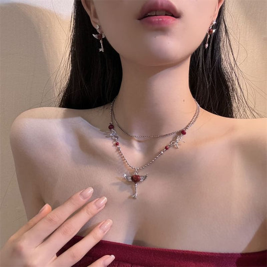 / Rhinestone Drop Pendant Cross Earring Choker Alloy Layered Heart