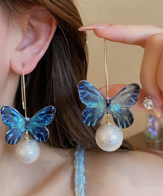 Boucles d'oreilles pendantes en forme de papillon avec perles acryliques bleues fines PO076