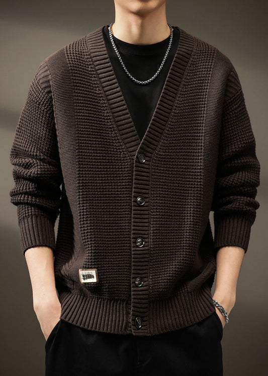 V Neck Spring Coffee Button Knit Solid Cardigans Men New