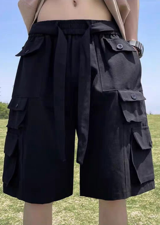 New Black Shorts Mens Asymmetrical Cotton Pockets Patchwork