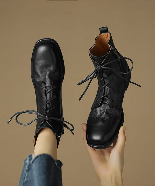 2024 Nouvelles bottes épaisses en cuir de vachette noir AP1023