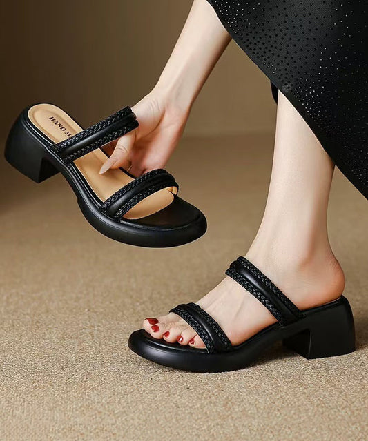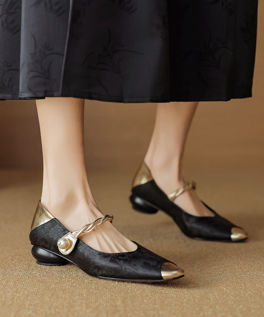 Splicing Black Cowhide Comfy Leather Chunky Shoes Classy