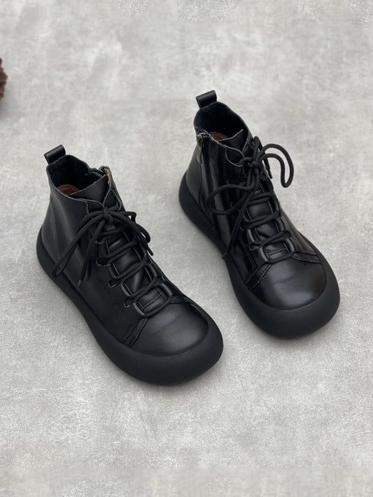 Spliced Flat Leather Genuine Boots Winter Women