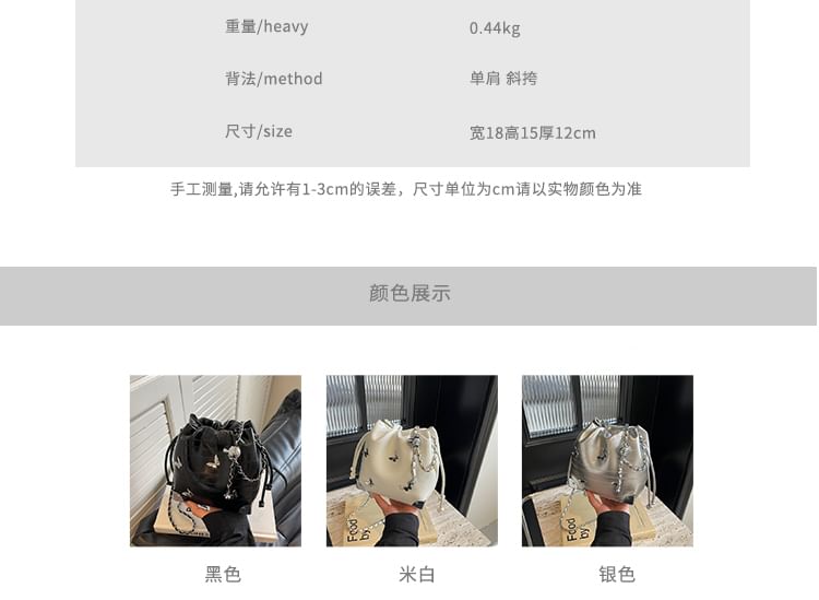 Sac seau en similicuir avec chaîne et papillon clouté