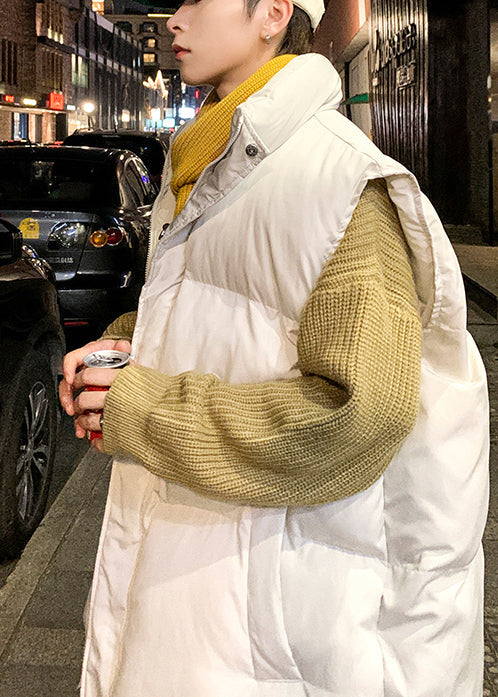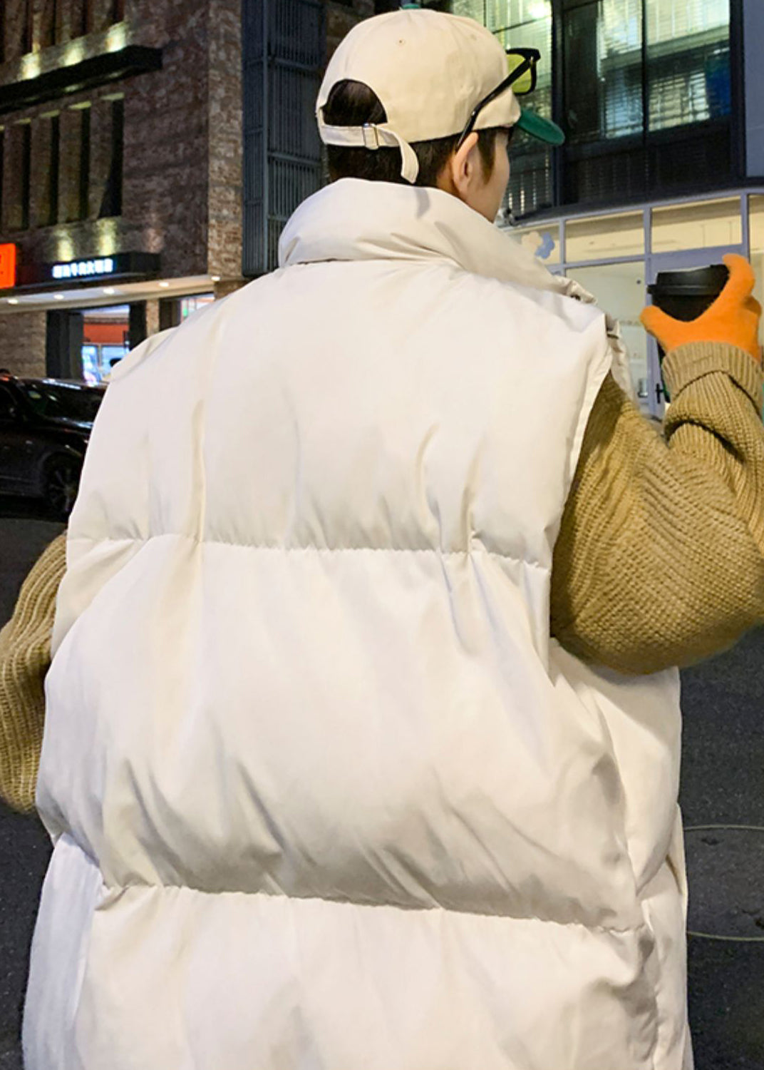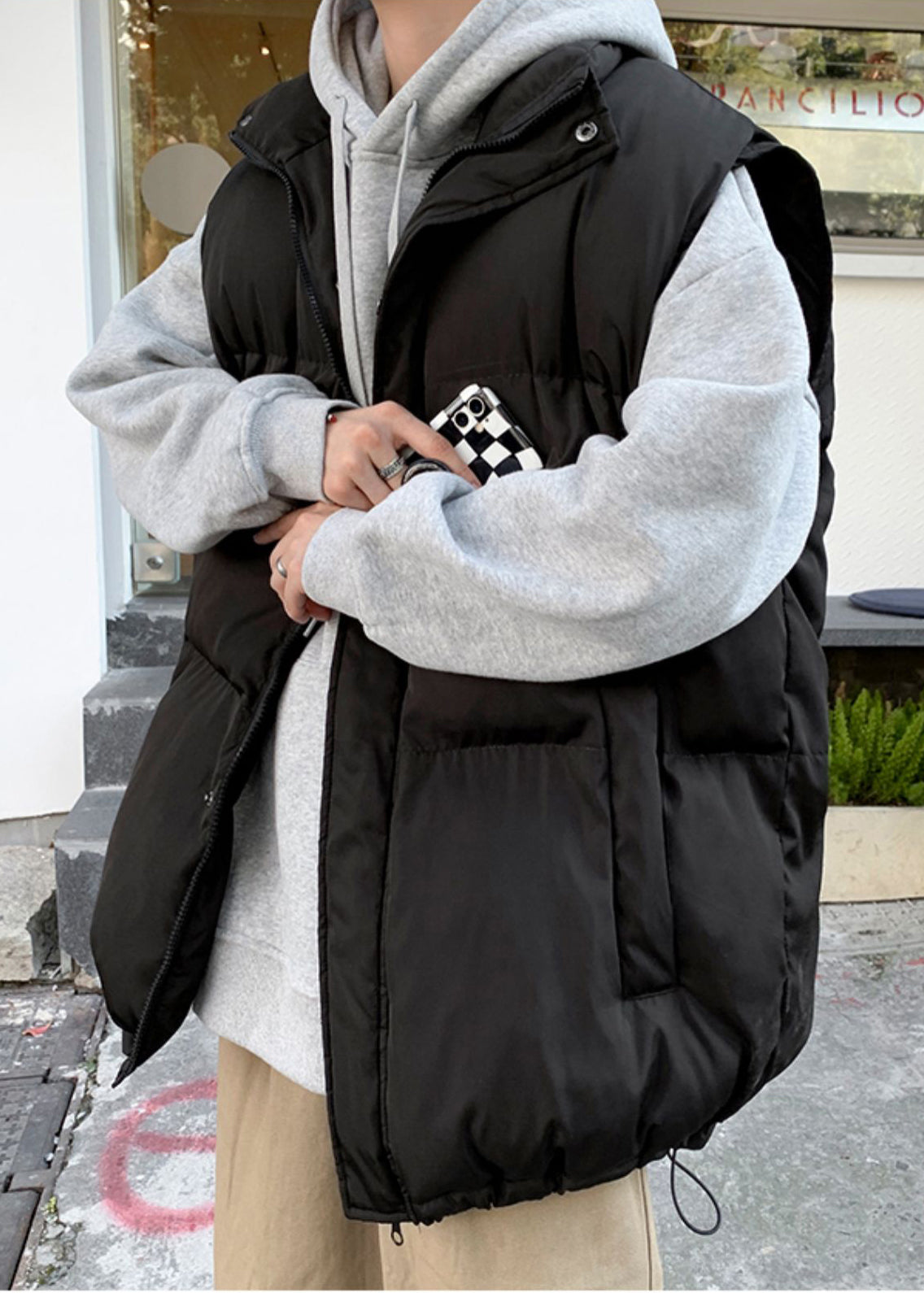 Classy Black Oversized Drawstring Fine Cotton Filled Mens Puffers Vests Winter TK024