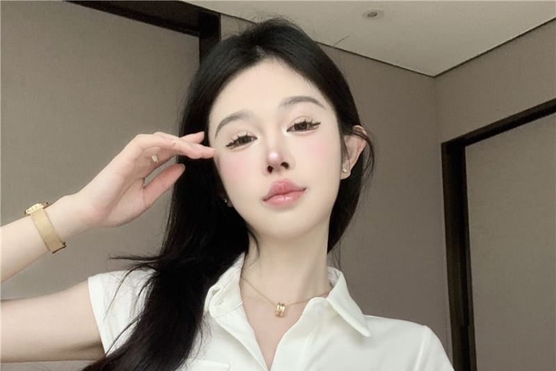 Collared Jersey Shirt Cap Sleeve Plain Pocket Flap
