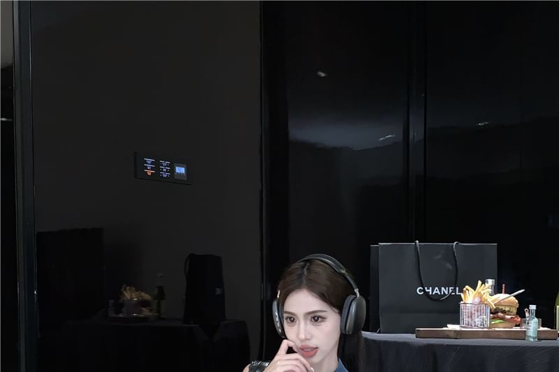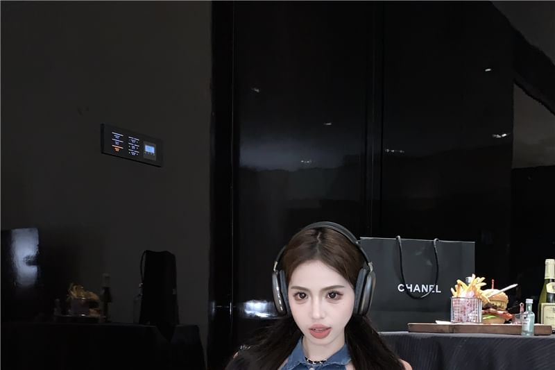Collared Skirt Mini Button Crop High / Vest Pencil Washed Waist Denim