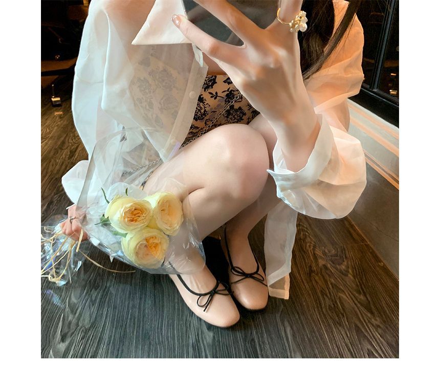 Contrast Trim Ribbon Ballet Flats