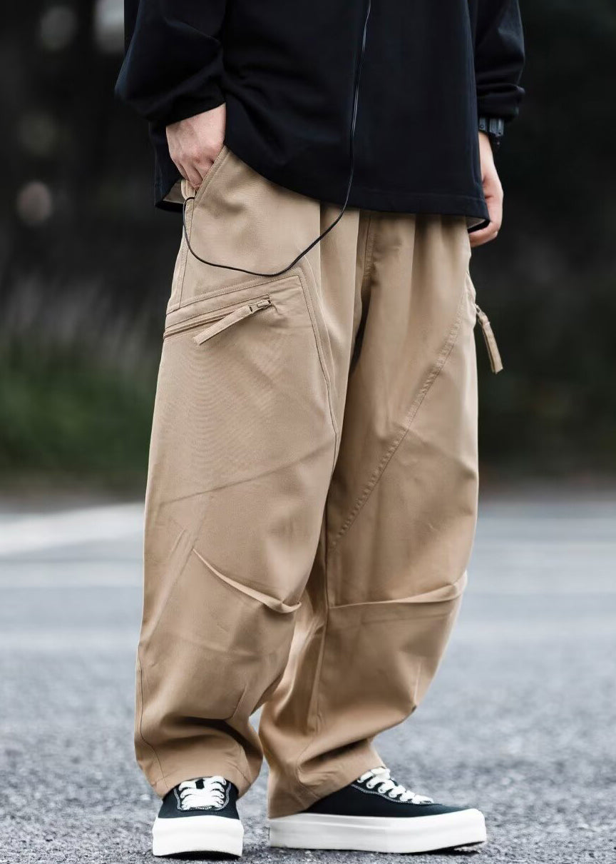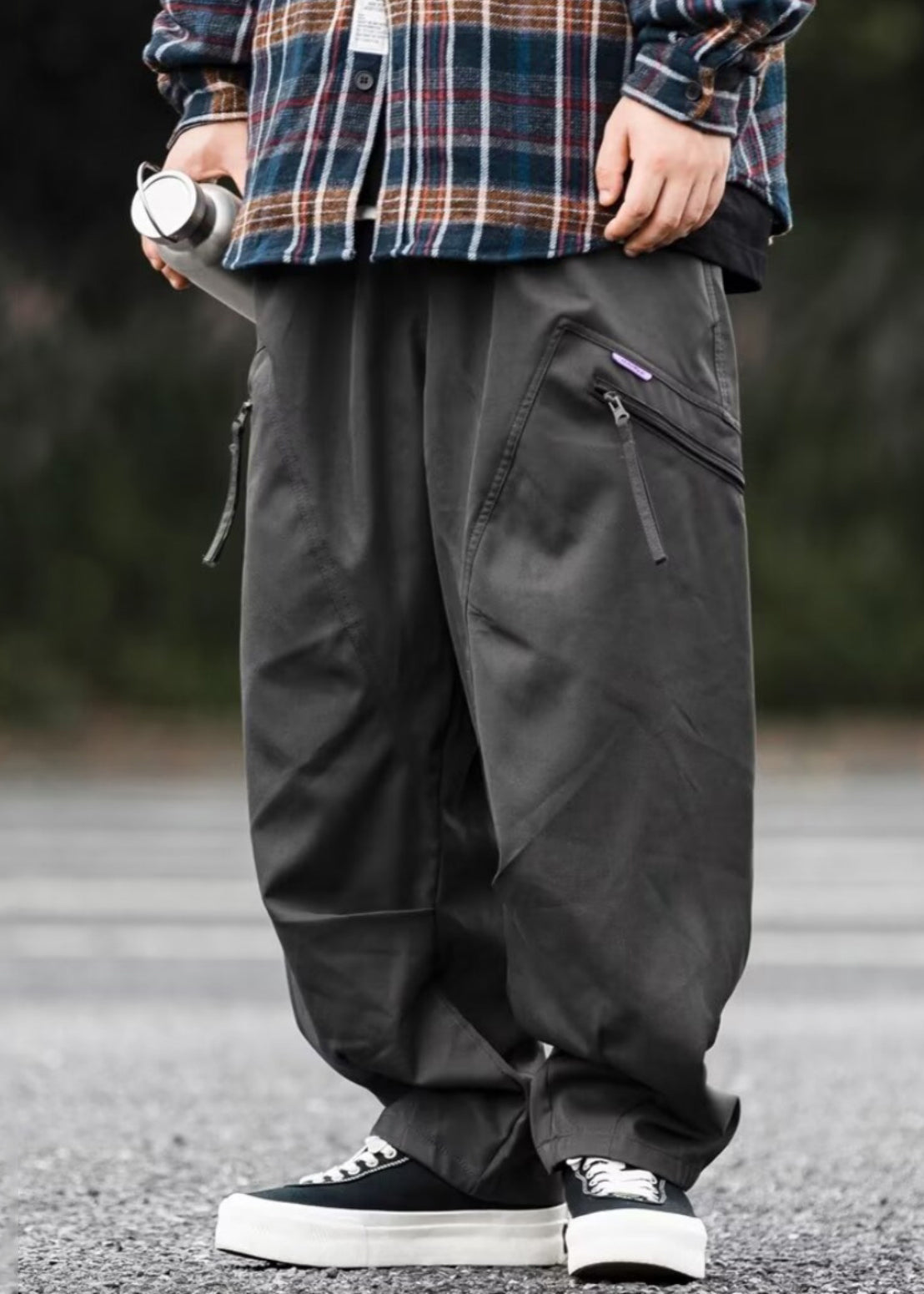 Cotton Zip Up Spring Pockets Gray Men New Pants Dark