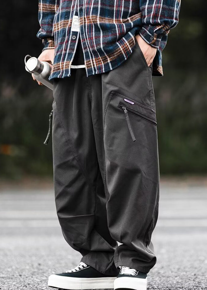 New Dark Gray Zip Up Pockets Cotton Men Pants Spring