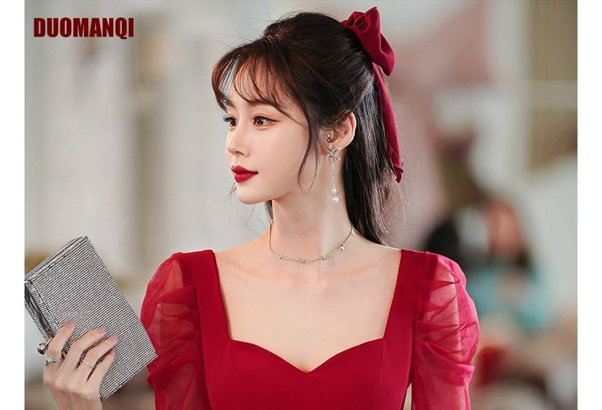 / Evening Short-Sleeve A-Line Gown Sweetheart Neckline Dress Mesh