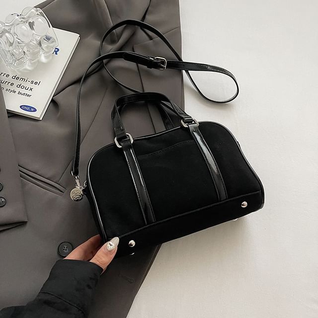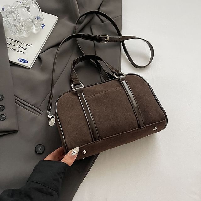 Faux Crossbody / Set Baseball Charm Suede Handle Bag Top