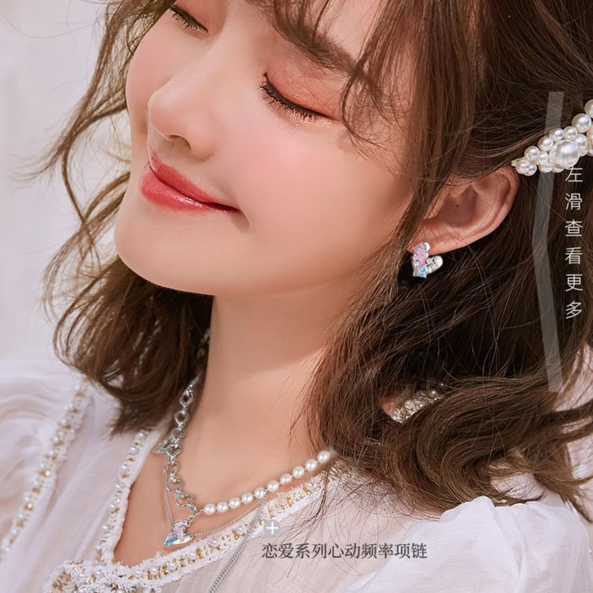 Panel Heart Sterling Silver Stud Earring / Ear Cuff