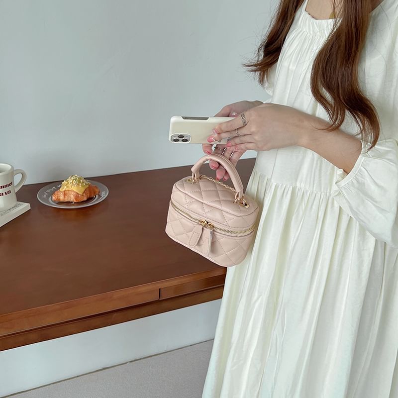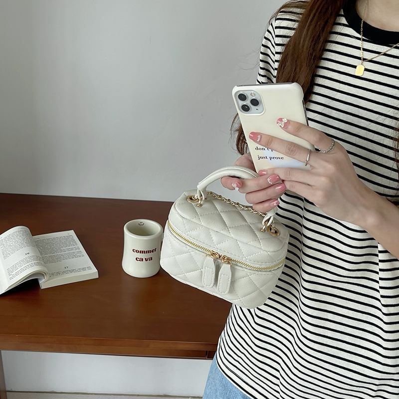 Faux Leather Plain Quilted Zip Crossbody Bag