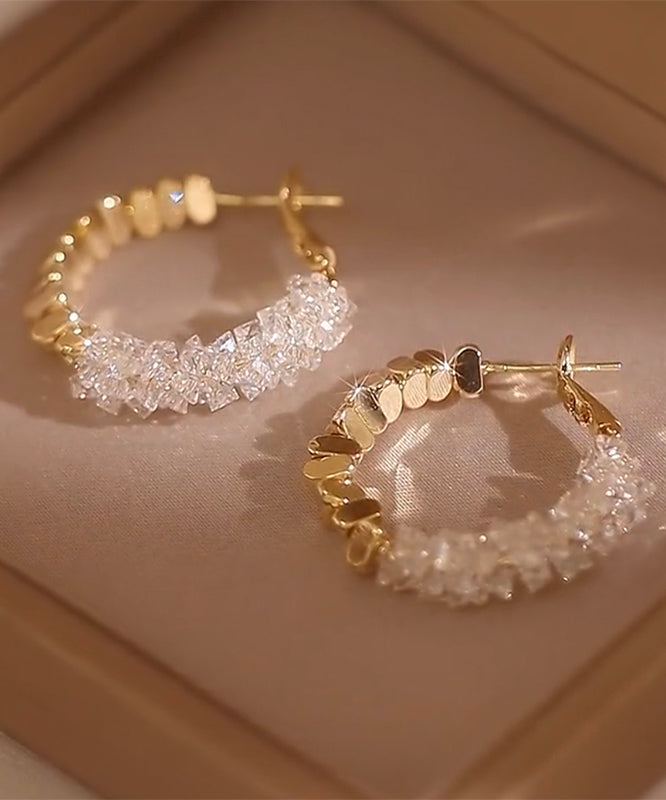 Novelty Light Green Copper Alloy Broken Silver Crystal Hoop Earrings